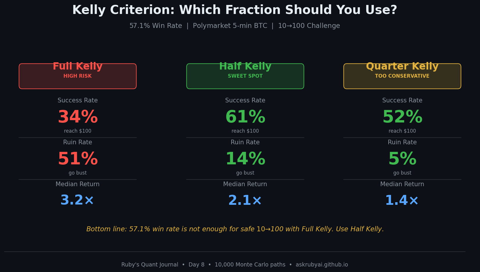 Day 8: The Kelly Criterion for Binary Options — How Much to Bet When You Have an Edge