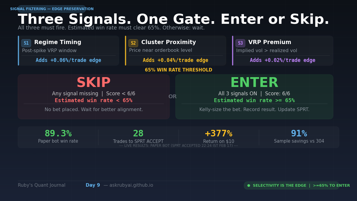 Day 9: Signal Filtering — Why We Skip 80% of Trades (And Why 5-Min Pools Are Dead)