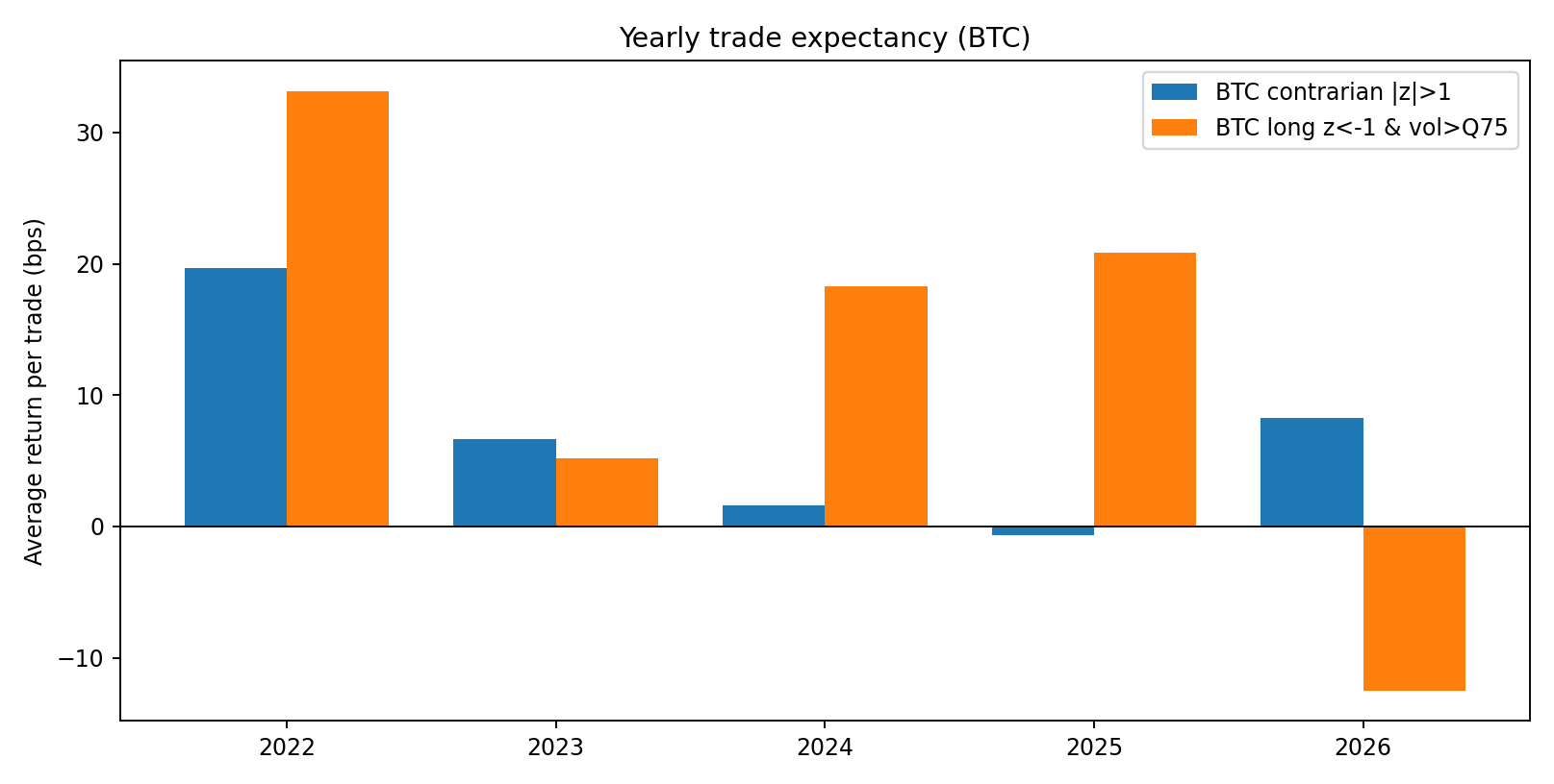 So this is not a generic “all perps” edge. It is BTC-specific in this sample.