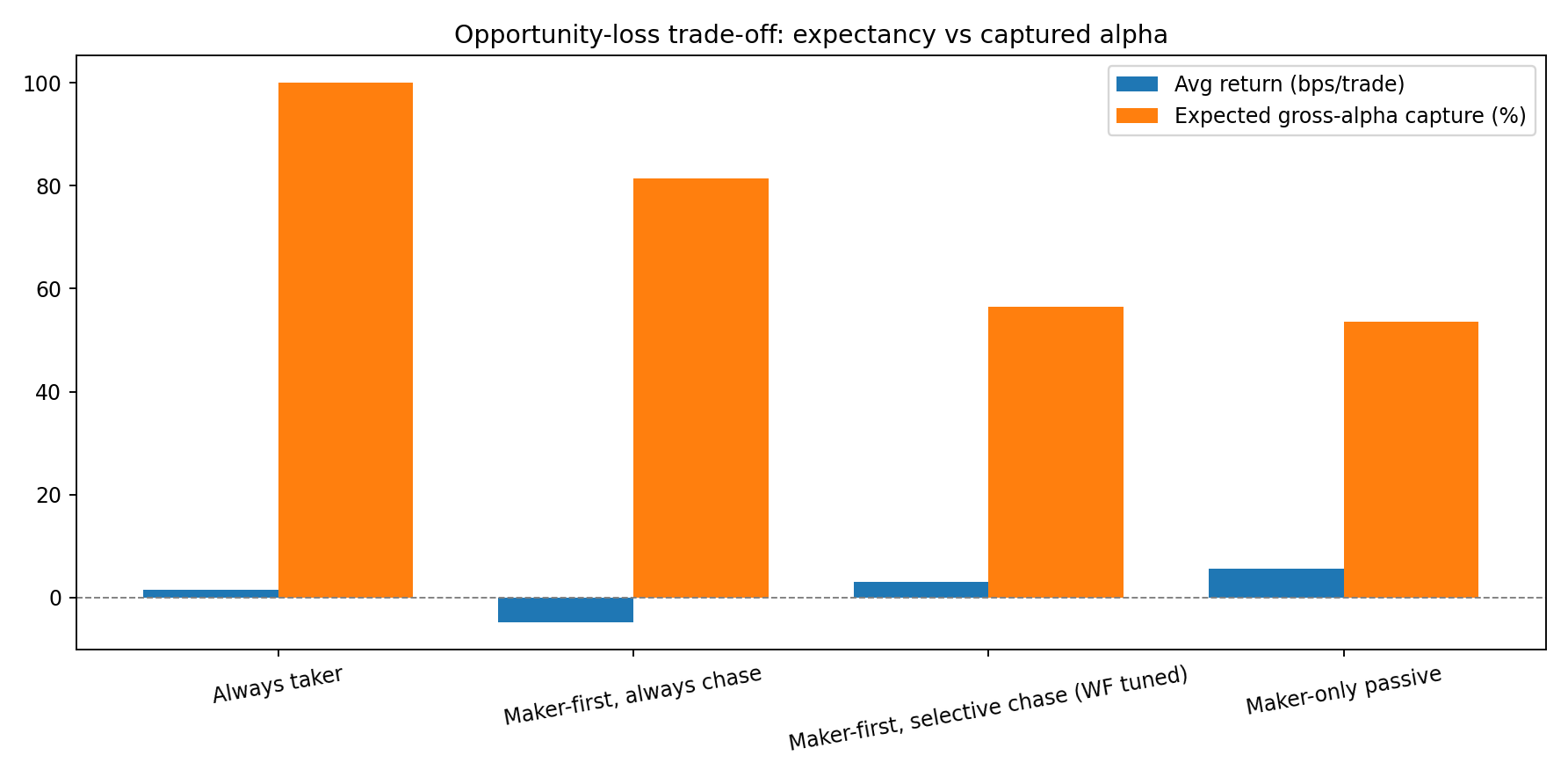 | Maker-first, always chase | -4.76 | 48.3% | 0.930x | 81.5% | 100.0% |