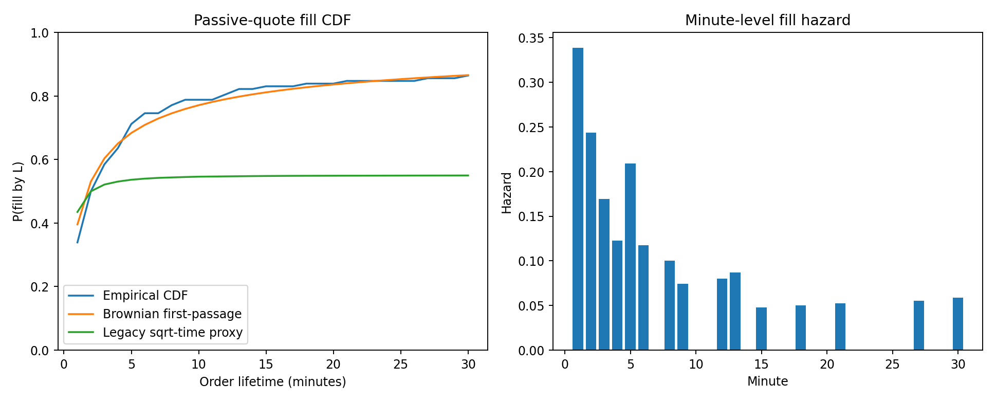 We were using a single expected fill probability. Real execution is a time-to-fill distribution problem.